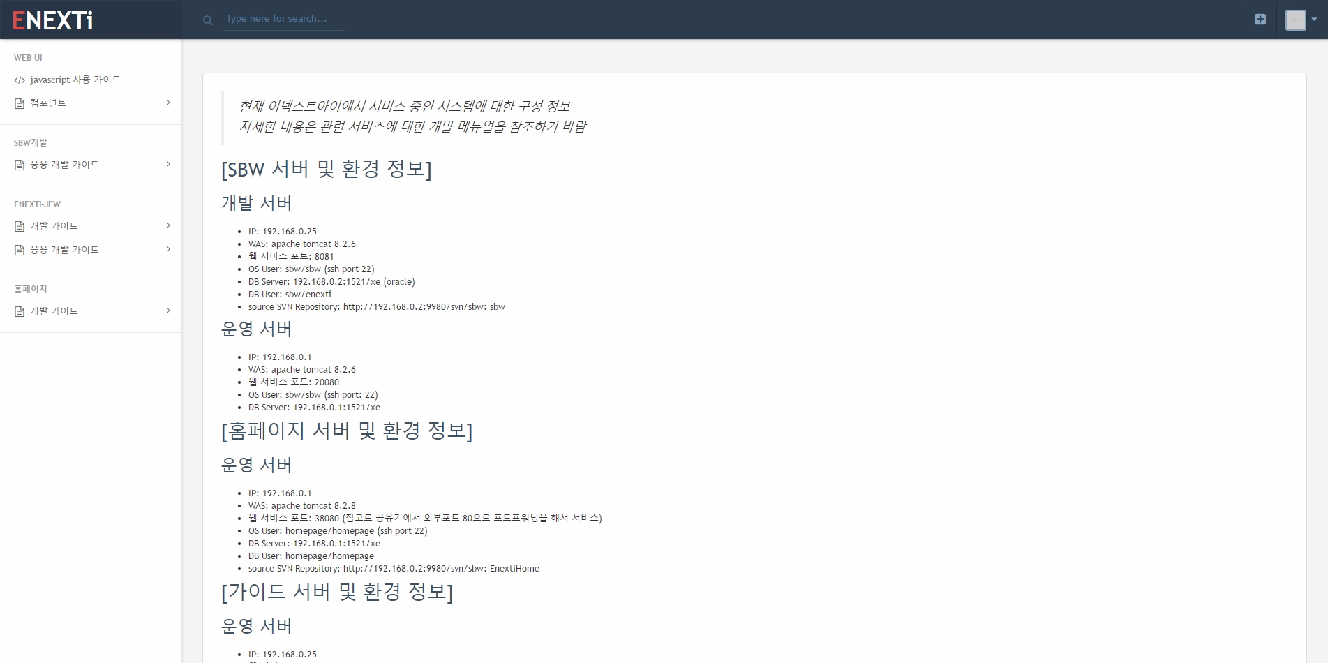 현재 SBW를 운영하고 있지만 지속적인 추가기능과 개선 요청에 대응하기 위한 개발서버입니다.
